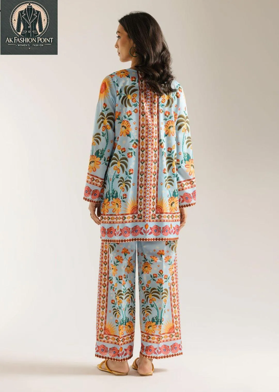 Experience the perfect blend of comfort and style with this stunning 2-piece Swiss lawn digital print set, designed specifically for the modern Pakistani woman. This ready-to-wear ensemble features a beautifully crafted shirt and matching trouser, both made from premium Swiss lawn fabric known for its breathability and durability.