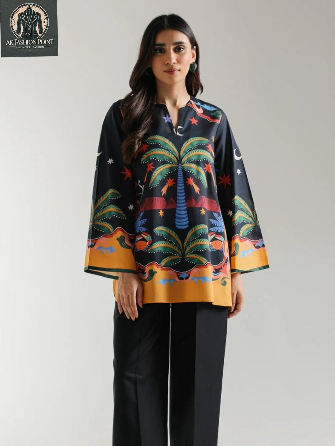 Transform your wardrobe with this stunning black lawn digital print shirt that combines traditional Pakistani craftsmanship with modern style. Made from premium lawn fabric, this women’s stitched dress shirt offers exceptional comfort and breathability, perfect for Pakistan’s climate.